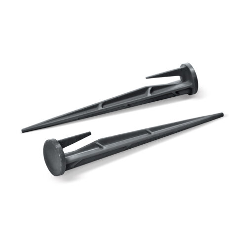 Kołki mocujące służą do solidnego przytwierdzania obrzeży trawnikowych oraz materiałów ogrodniczych, takich jak folie, maty szkółkarskie, siatki, tkaniny i włókniny. Zapewniają stabilność zamocowanych elementów i ograniczają ich przemieszczanie się, sprawdzając się zarówno w lekkiej, piaszczystej glebie, jak i w bardziej zbitym, twardym gruncie.