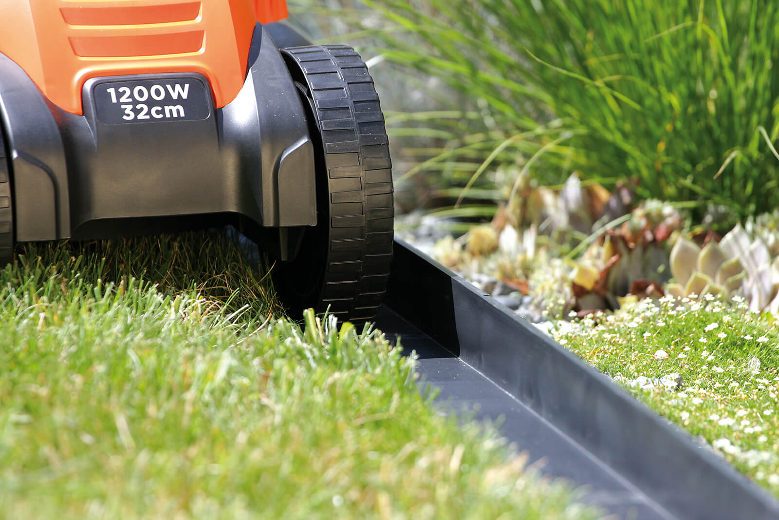 Obrzeże w przekroju poprzecznym ma kształt kątownika, dzięki któremu jesteśmy w stanie kosić trawę tuż przy obrzeżu, poruszając się dwoma kołami kosiarki jezdnej po części obrzeża leżącego na podłożu, bez konieczności dodatkowego używania podkaszarki. Obrzeże CornerRIM 55 stosowane jest również jako opaska wokół budynków, która przytrzymuje ozdobny kamień, kostkę brukową lub kratkę GardenPUZZLE, zamontowaną tuż przy elewacji budynku. Produkt Prawnie Chroniony.
