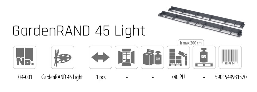 Obrzeże GardenRAND 45 Light wykonane z tworzywa sztucznego pozyskanego w 100 % z recyklingu, z dodatkiem składników, dzięki którym jest odporne na warunki atmosferyczne. Stosowane jest do oddzielenia: