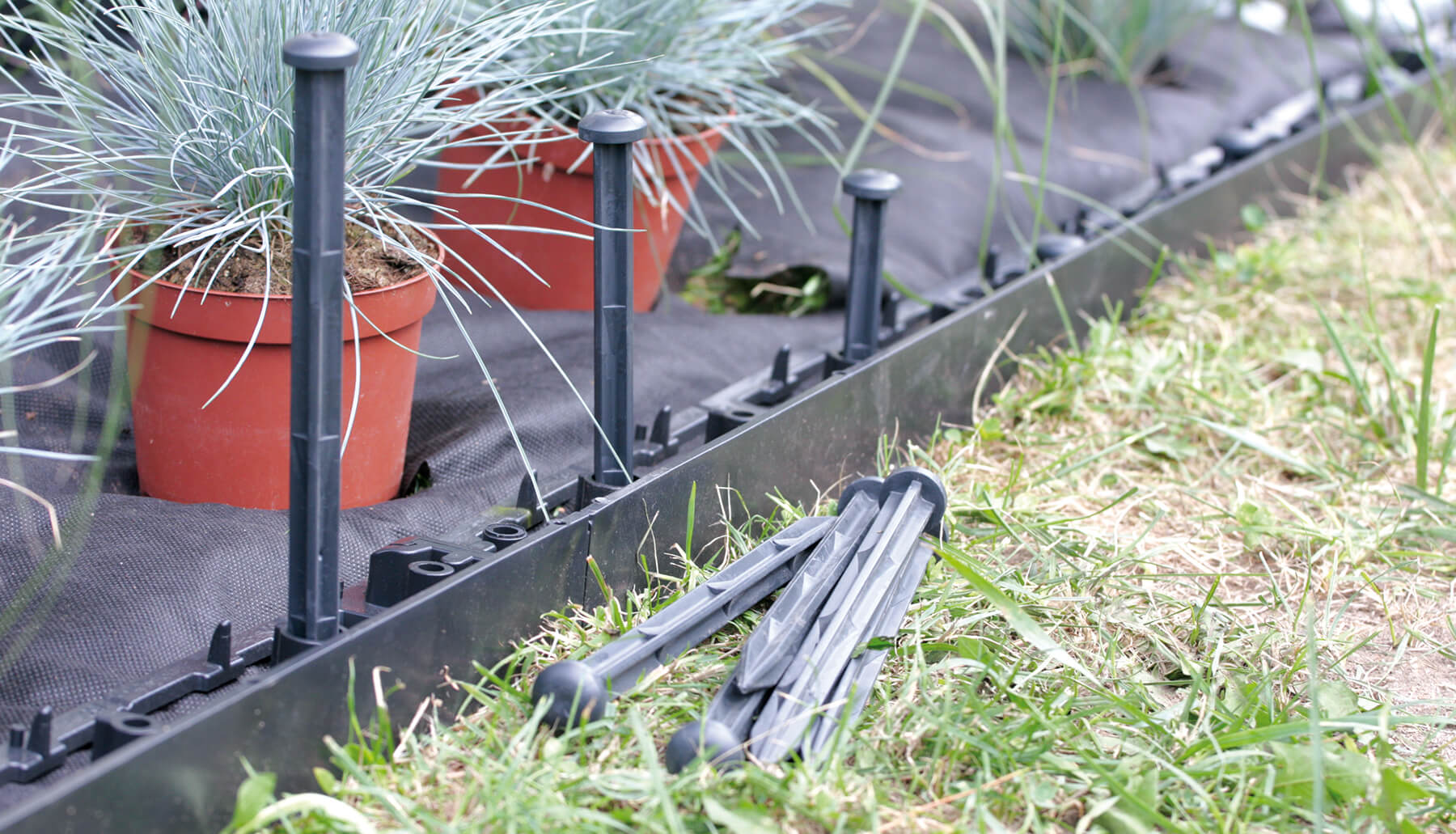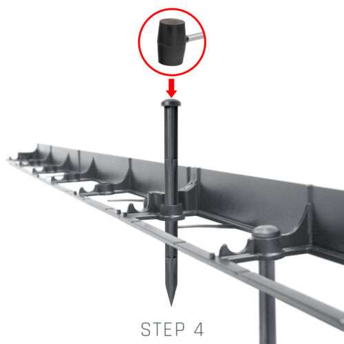 Obrzeże mocowane jest do gruntu za pomocą specjalnych kołków RandPEG 225, każdy 1-metrowy odcinek obrzeża posiada aż 5 otworów mocujących do podłoża, dzięki czemu bardzo dobrze przylega i spełnia swoją funkcje krawężnika.