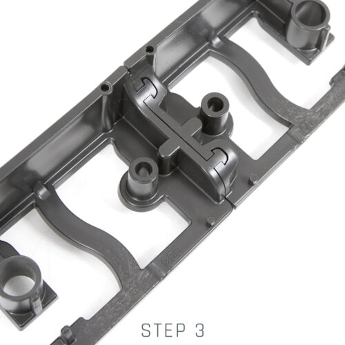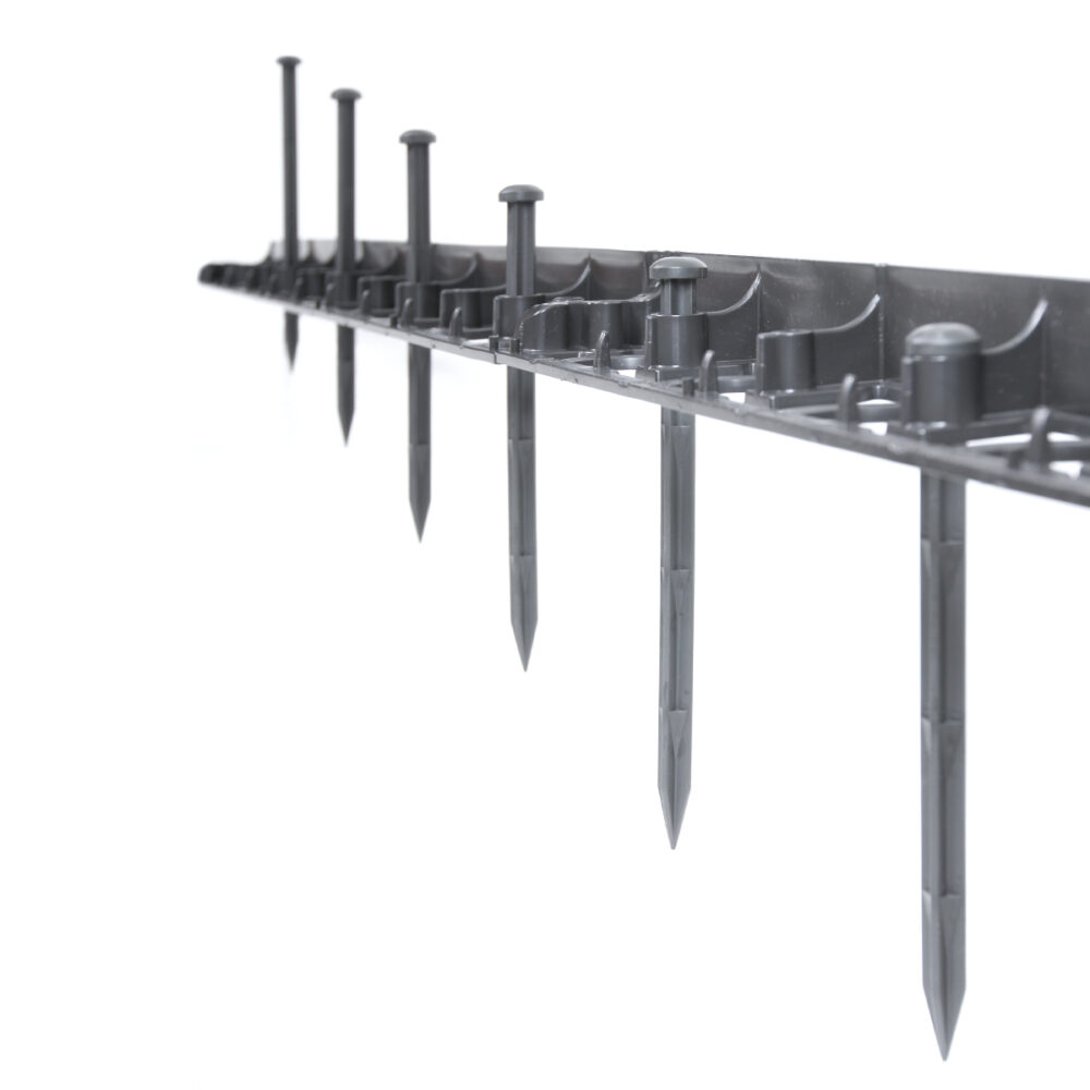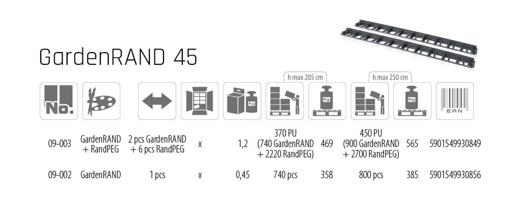 Obrzeże GardenRAND 45 mocowane jest do gruntu za pomocą specjalnych kołków RandPEG 225, każdy 1-metrowy odcinek obrzeża posiada aż 5 otworów mocujących do podłoża, dzięki czemu bardzo dobrze przylega i spełnia funkcje krawężnika.
