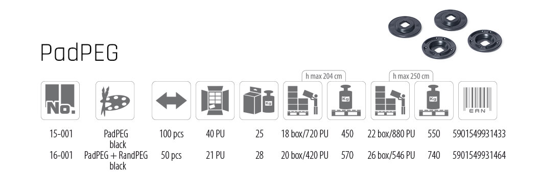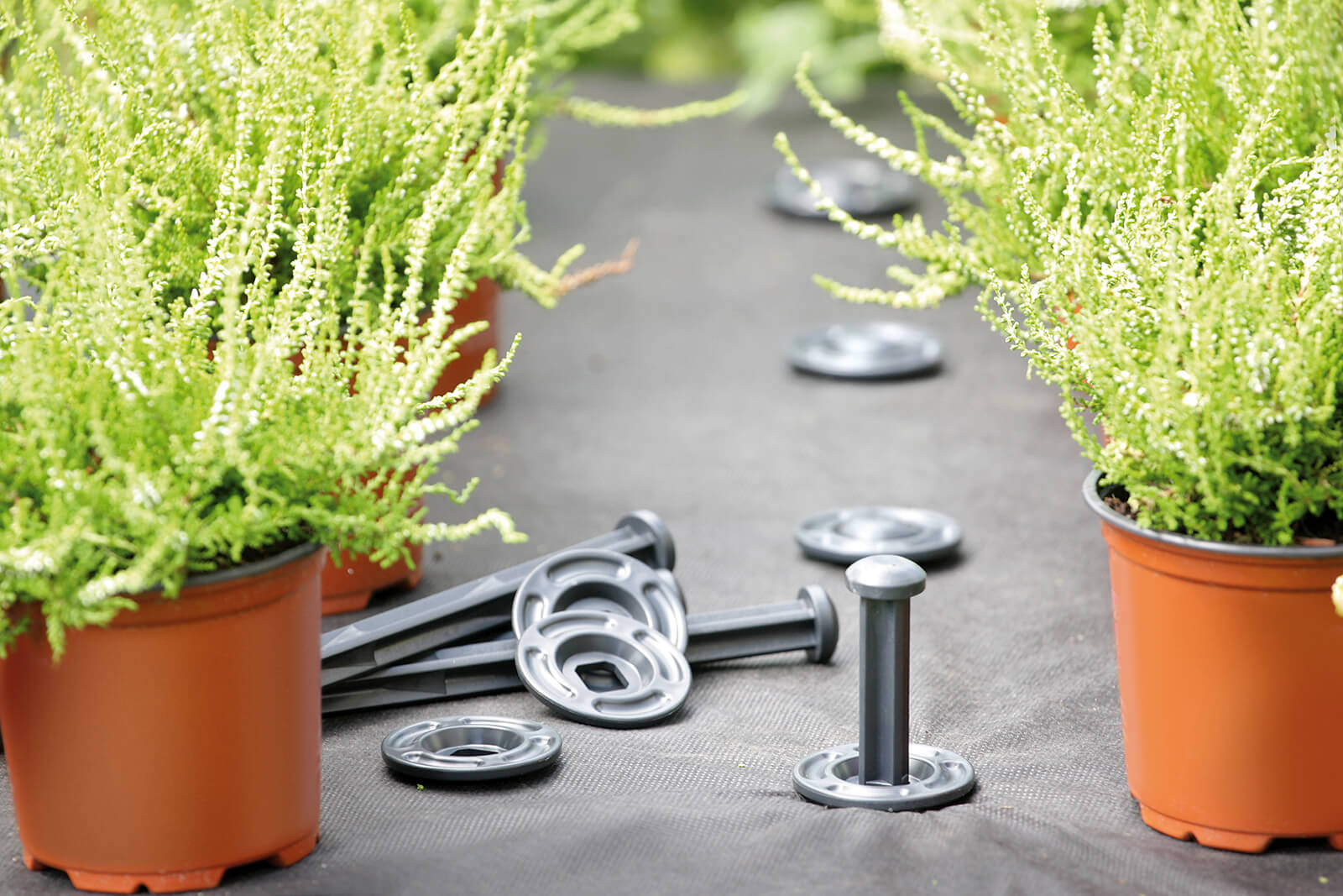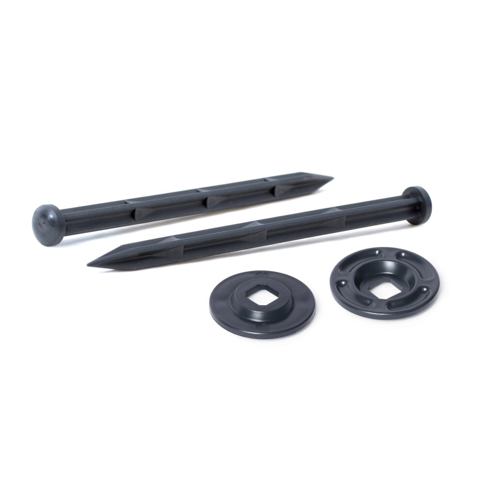 Implementowane są do mocowania obrzeży GardenRAND 45, GardenRAND 55, CornerRIM 55 oraz kratki parkingowej GardenPUZZLE II. Wykonane z tworzywa o podwyższonej twardości, odpornego na niekorzystne warunki atmosferyczne. Stosowane są również samodzielnie do mocowania agrowłóknin i geowłóknin.
