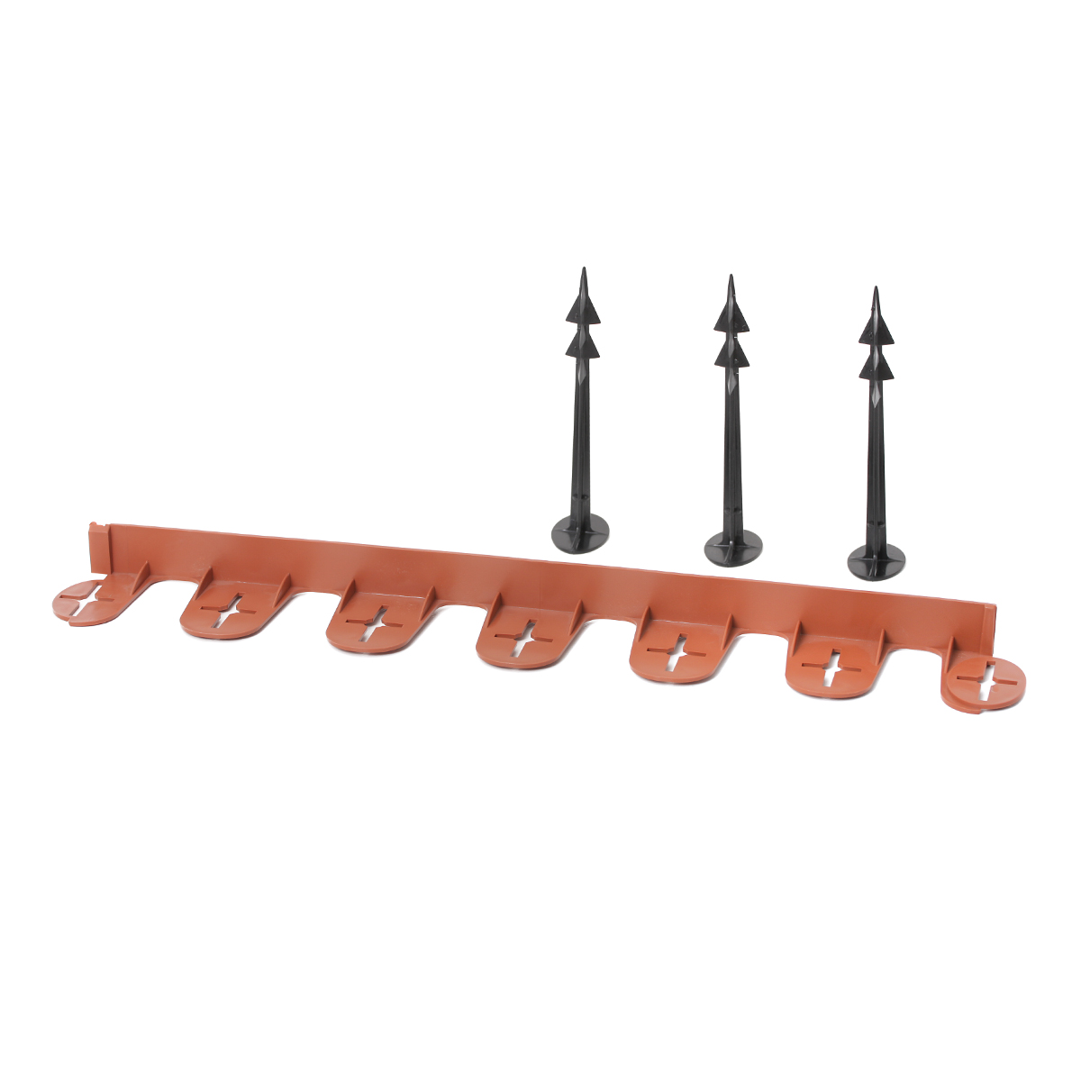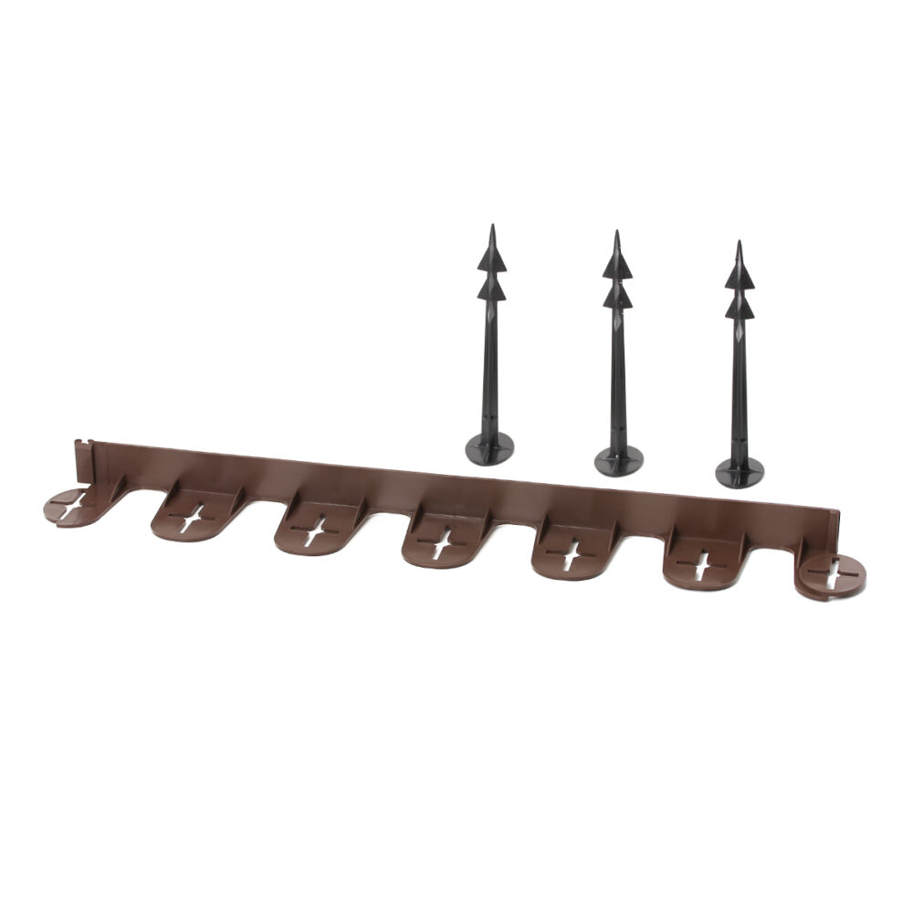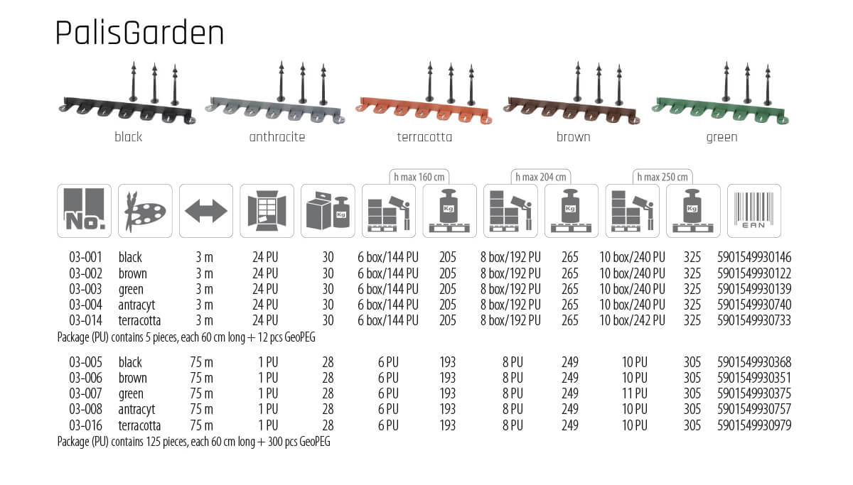 Obrzeże trawnikowe, pozwala w estetyczny sposób oddzielić trawnik od miejsc nasadzeń roślinnych, obsypanych korą, zrębkami czy ozdobnym kamieniem. Można je dowolnie wyginać na potrzeby uzyskania pożądanego kształtu. Ułatwia prowadzenie kosiarki na linii trawnik – obrzeże. W komplecie znajduje się obrzeże wraz z kotwami mocującymi GeoPEG 200.